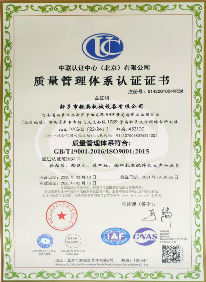 公司2016年被认定为高新技术企业,“新乡市精细粉体成套装备工程技术研究中心”,“振英机械”为河南省商标,新乡市知名商标;2017年获得了“知识产权管理体系认证”证书,被认定为“河南省知识产权优势企业”,新乡市知识产权示范企业;2018年被认定为科技小巨人培育企业,2019年通过两化融合管理体系认证证书,国家知识产权优势企业认定,并再次认定为国家高新技术企业。2022年被认定为“河南省专精特新中小企业”。产品通过了ISO9001-2016质量管理体系认证、CE认证等多项相关产品的国际认证。