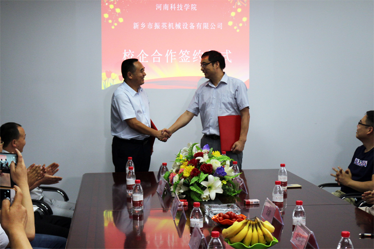 6月25日,新乡市振英机械设备有限公司、河南科技学院正式进行校企联合人才项目签约,并正式成立校企共同教学实习基地.
